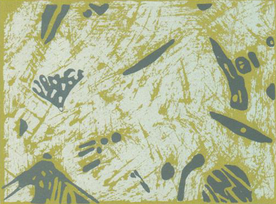 This is a print from the "Épique" -series by Keshav Malla. Each print in the series is different, but they all include the same colour-scheme and forms. We leave it the viewer to interpret the prints and find recognizable forms and figures in them.